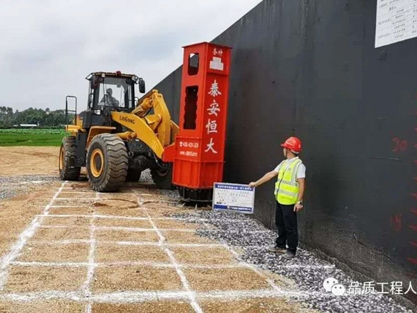 2020年6月11日,信梧一期總監(jiān)辦督促一總包部采用信梧路品質(zhì)工程示范創(chuàng)建主要措施,在涵背回填過程中采用高速液壓夯實(shí)機(jī)進(jìn)行補(bǔ)強(qiáng)夯實(shí)。在K9+932通道涵背回填實(shí)行"五專"施工即采用專門材料、專門壓實(shí)、專門的施工隊(duì)伍、專門的監(jiān)理人員和進(jìn)行專門的檢測(cè)。